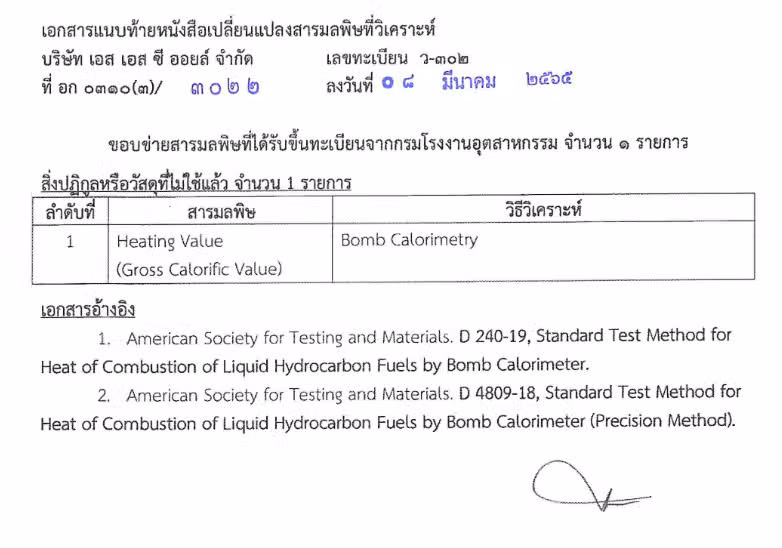 รับวิเคราะห์ค่าความร้อน Heating Value โดยเครื่อง Bomb Calorimetry ขึ้นทะเบียนกับกรมโรงงาน